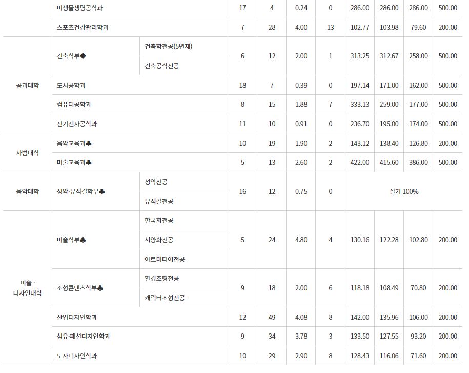 2022학년도에는 정시 모집 군을 따로 공개하고 있지 않기 때문에 경쟁률 위주로 자료를 살펴보도록 하겠습니다.