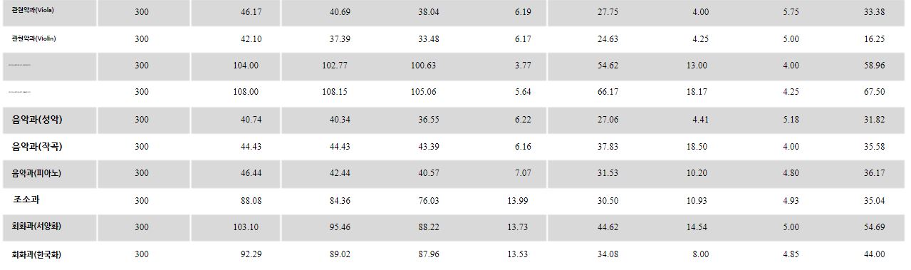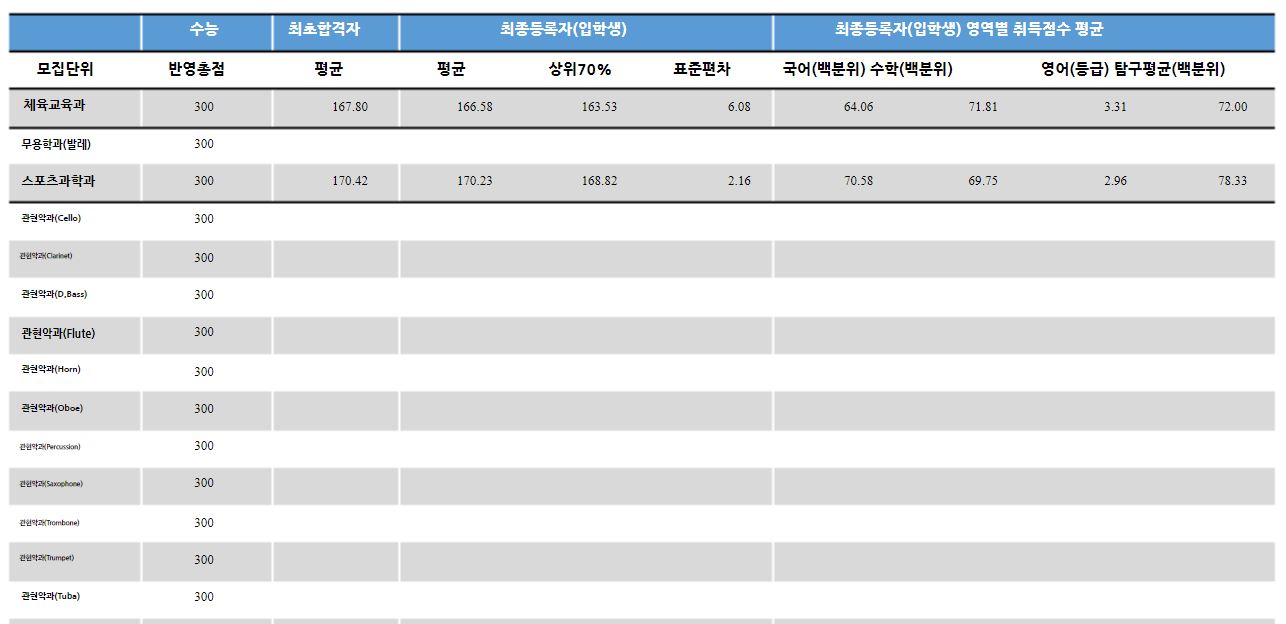 | [4년제/서울특별시] 2024학년도 정시 대비 추계예술대학교 작년(2023학년도) 정시 등급 (0) | 2024.01.31 |
