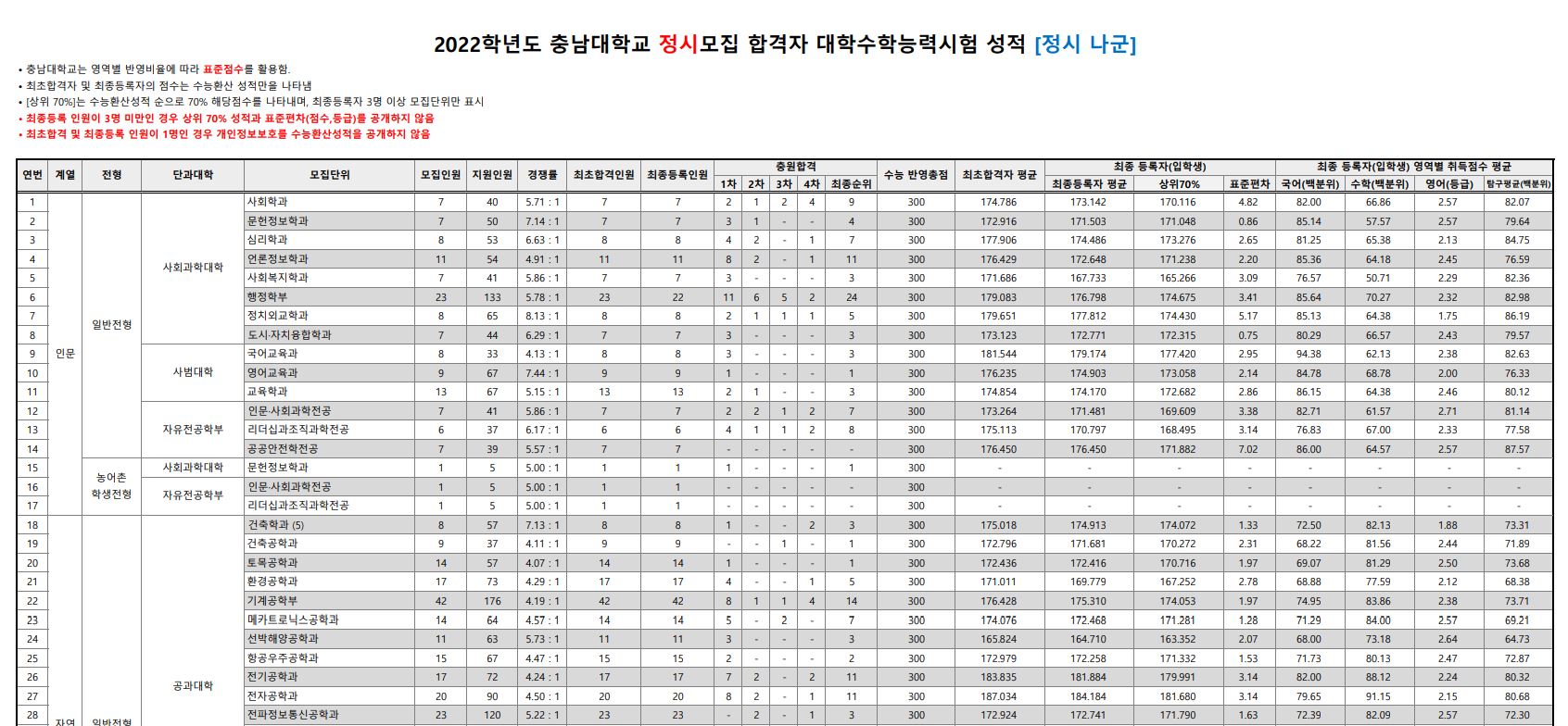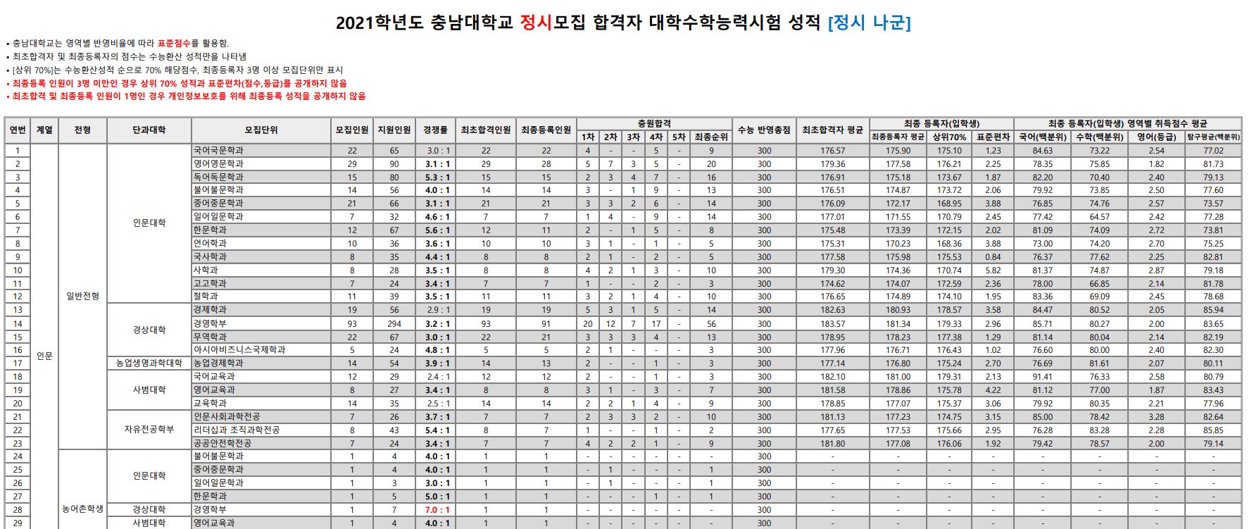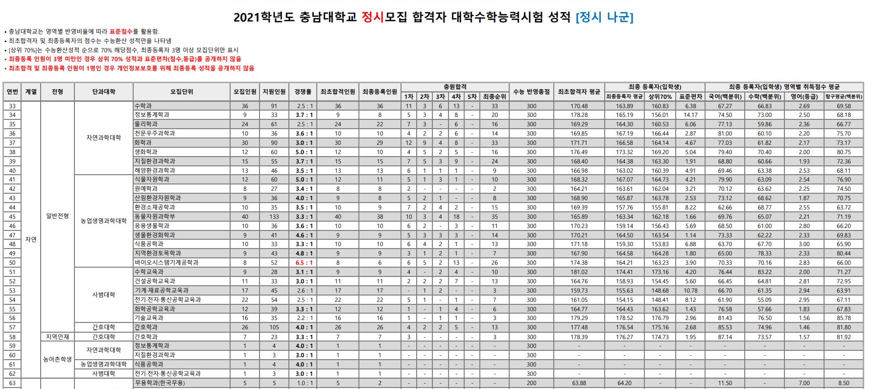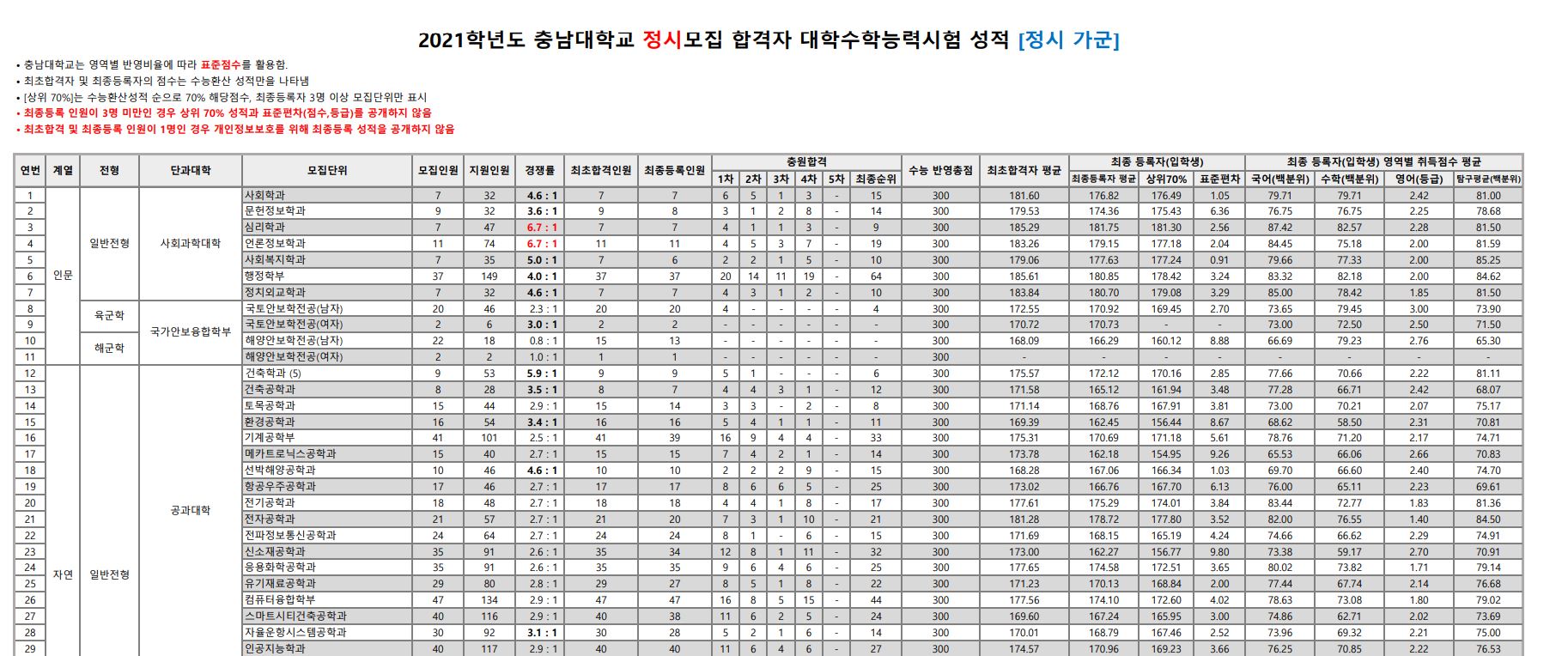 오늘은 충남대학교의 3개년 정시 등급에 대해 포스팅해보도록 하겠습니다.