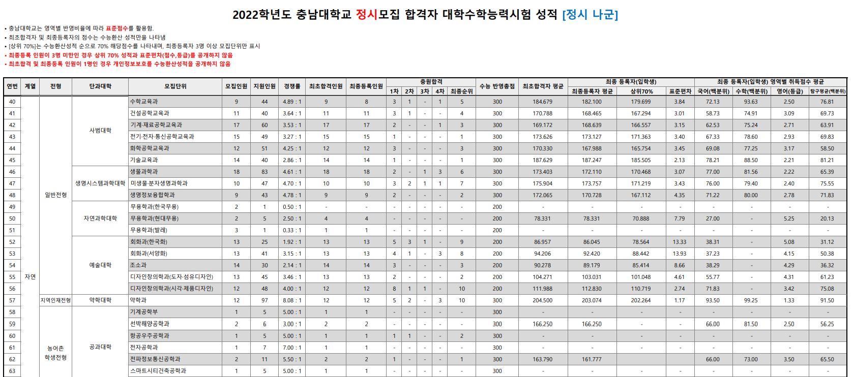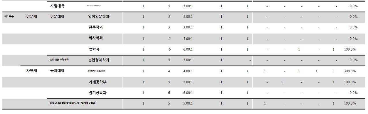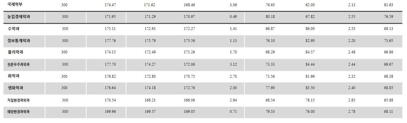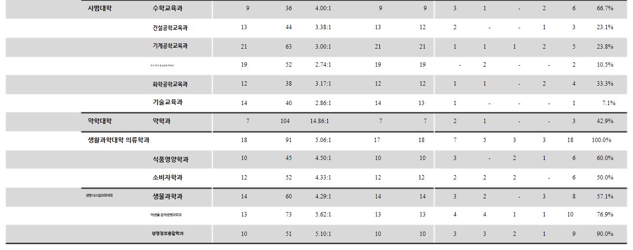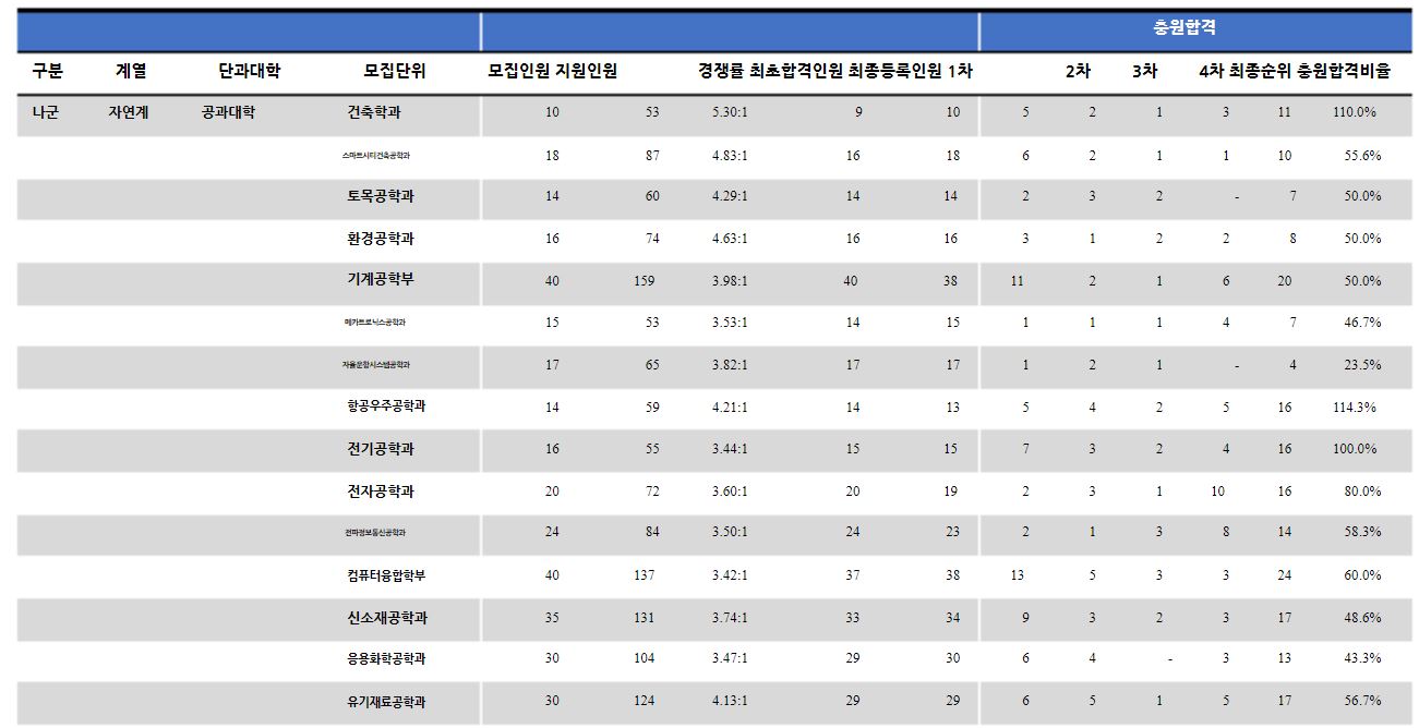 충남대학교에서는 이전 정시 모집 군을 공개하고 있지 않아 경쟁률을 위주로 자료를 살펴보도록 하겠습니다.