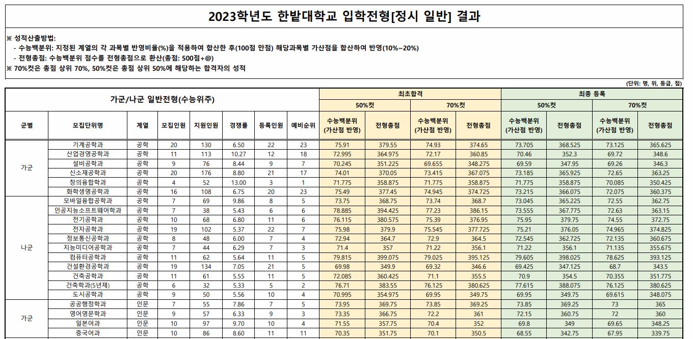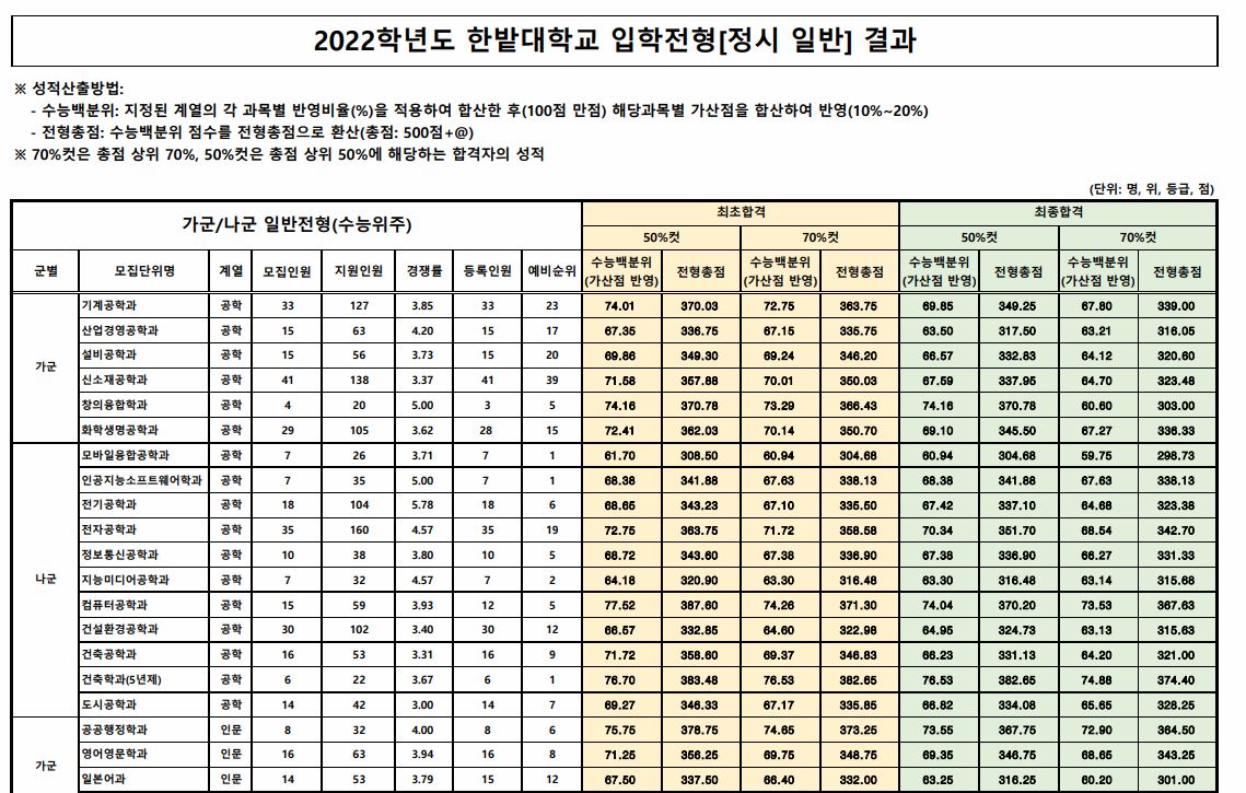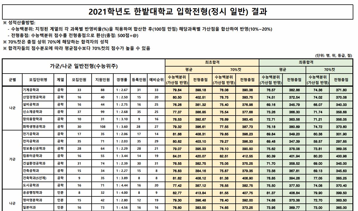 오늘은 한밭대학교의 3개년 정시 등급에 대해 포스팅해보도록 하겠습니다.