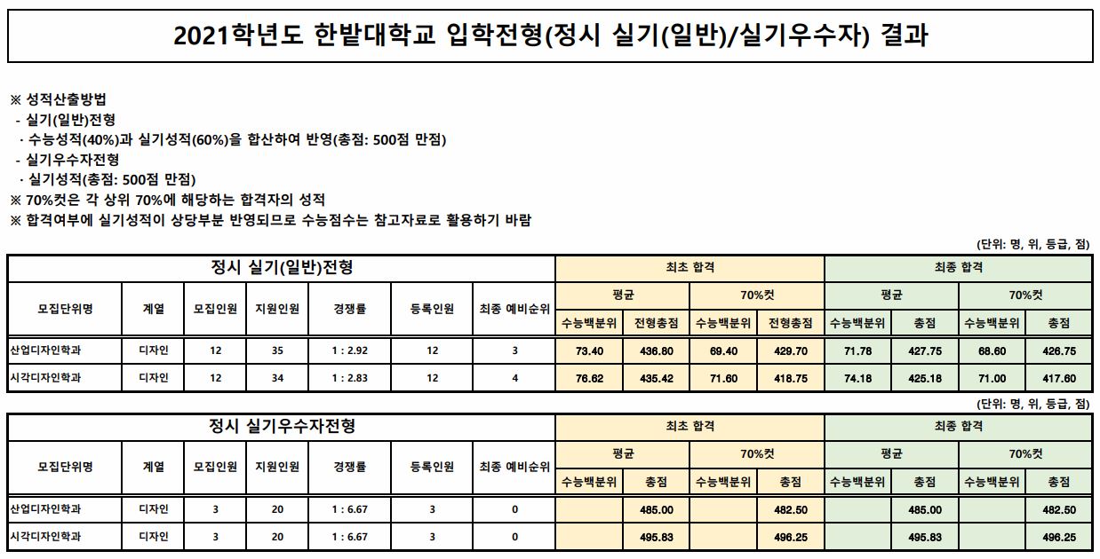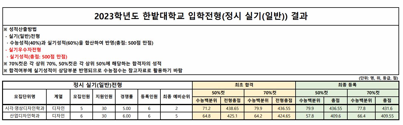 그리고 실기전형으로 시각영상디자인학과, 산업디자인학과를 모집했었습니다.