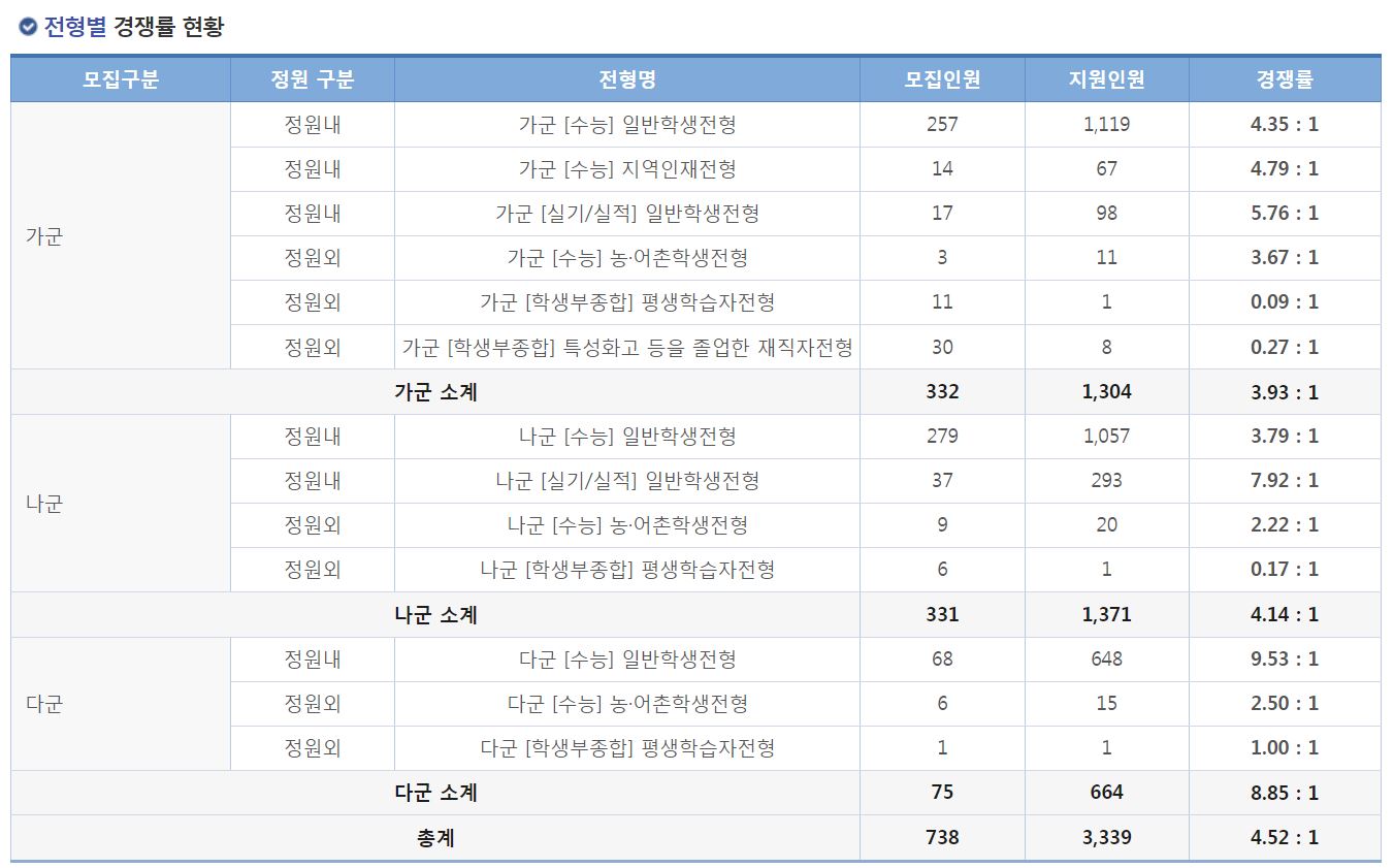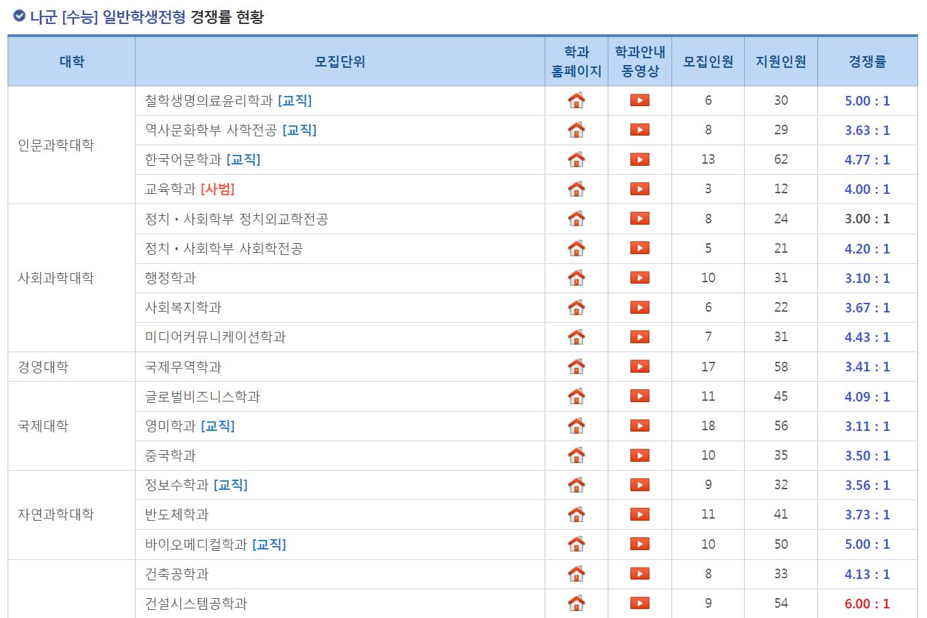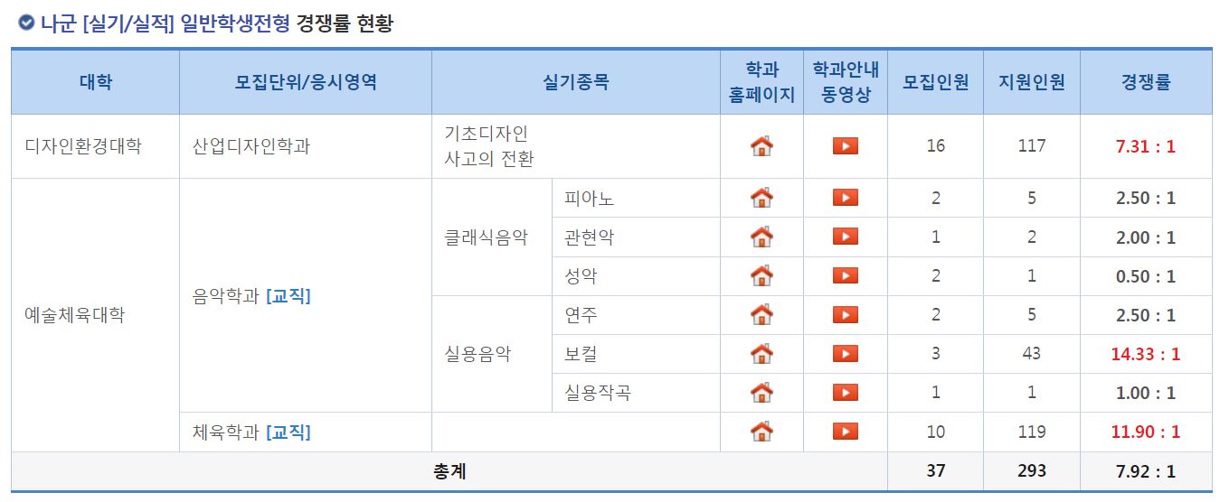 나군 [실기/실적] 일반학생전형 경쟁률 현황