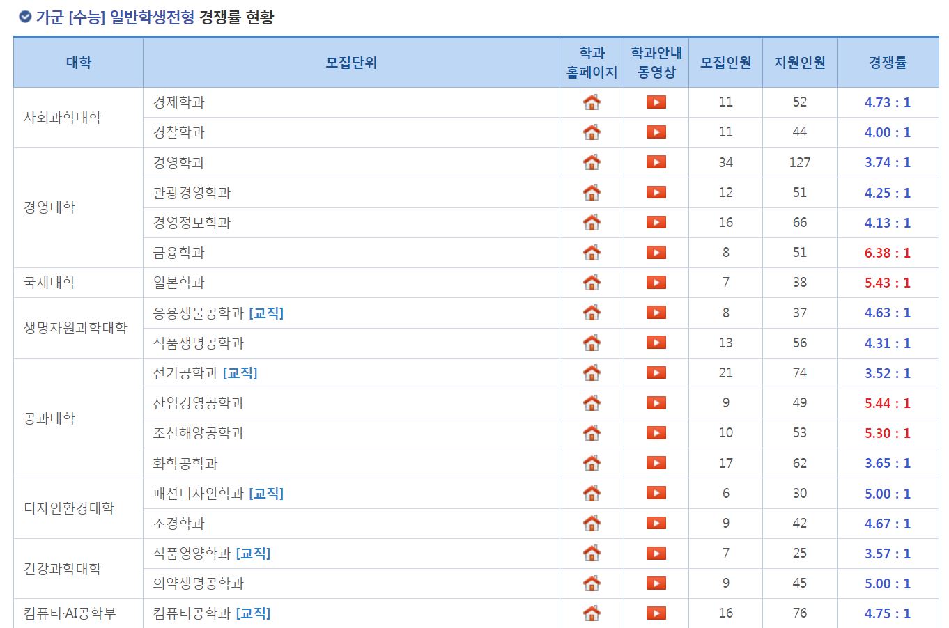 가군 [실기/실적] 일반학생전형 경쟁률 현황