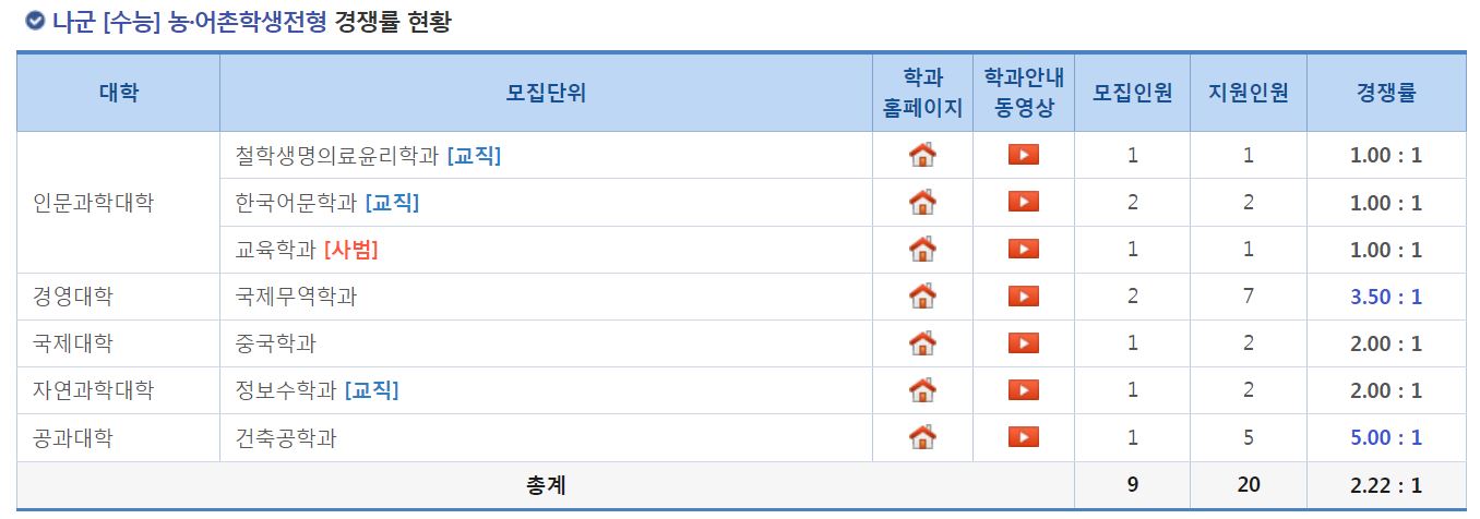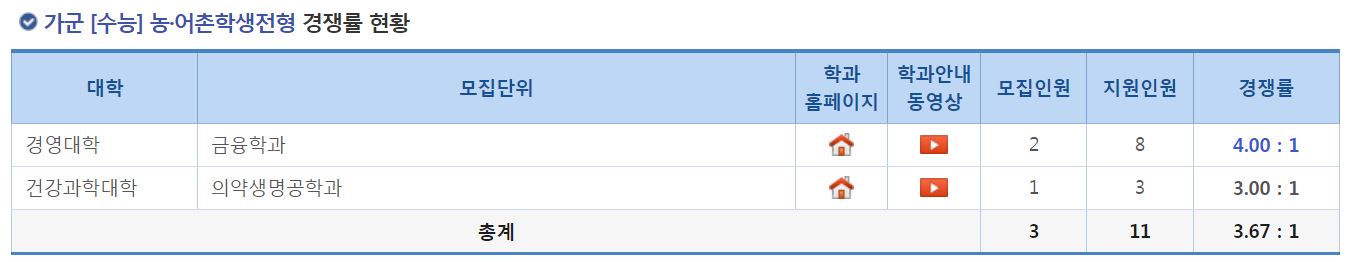 가군 [수능] 농어촌학생전형 경쟁률 현황