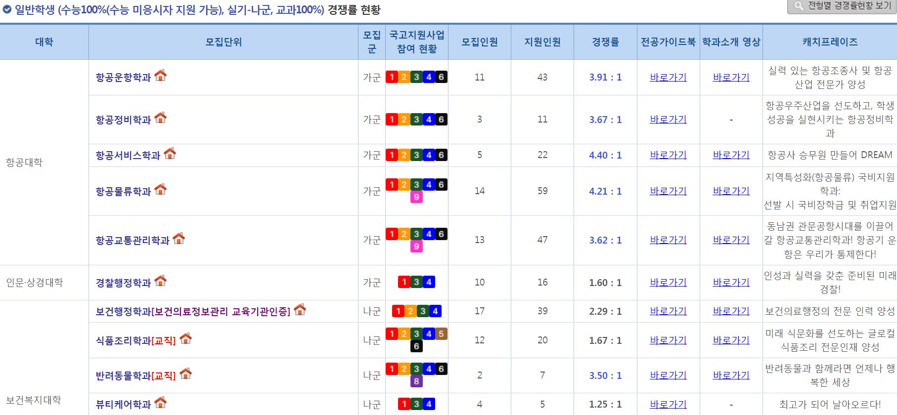 일반학생 (수능100%(수능 미응시자 지원 가능), 실기-나군, 교과 100%) 경쟁률 현황