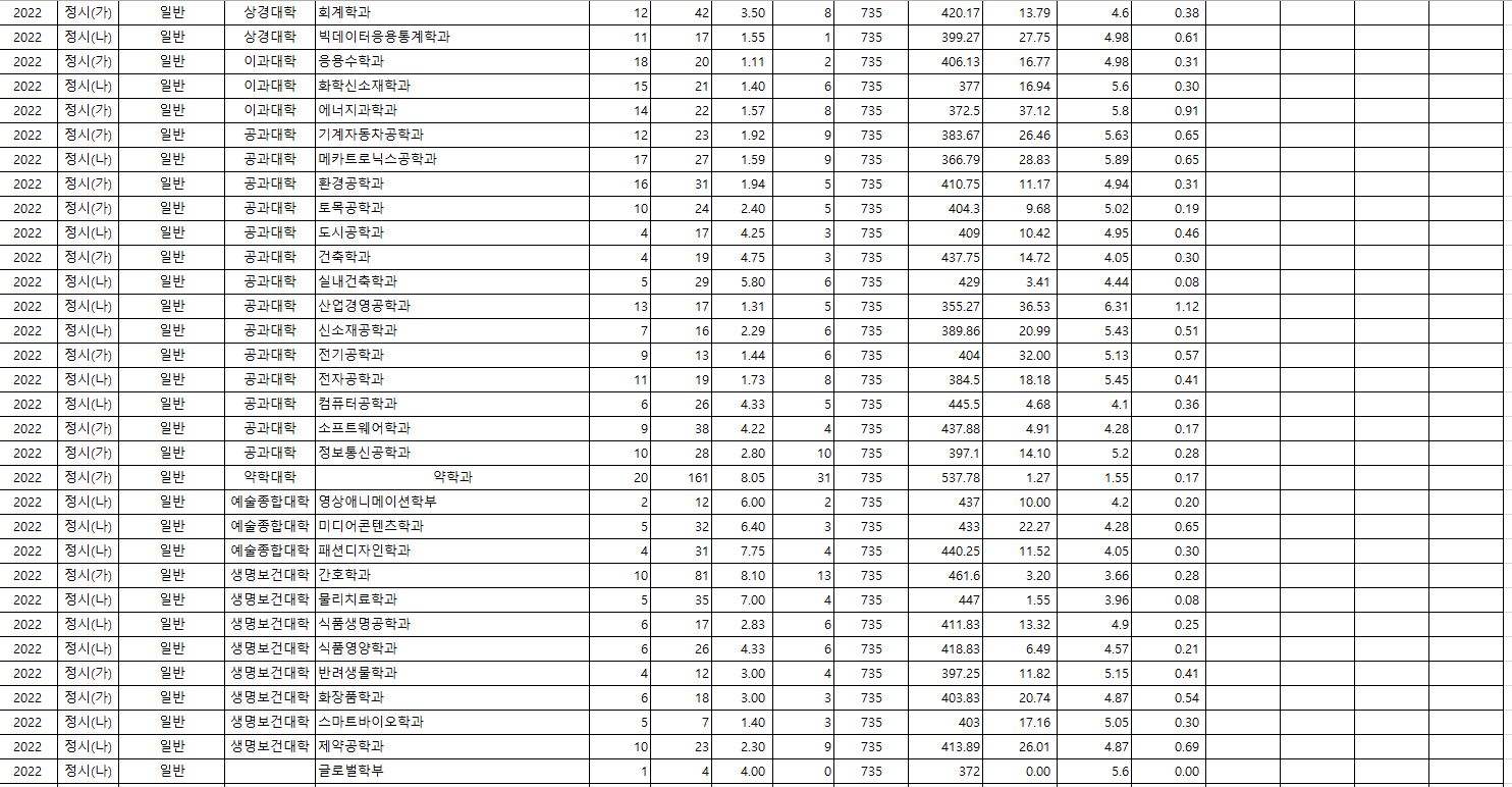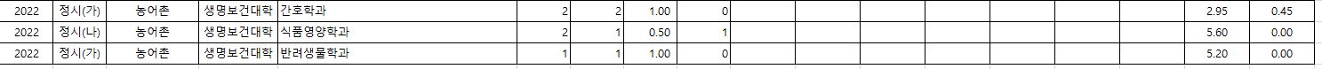 2022학년도 정시 모집 군은 다음과 같았습니다.