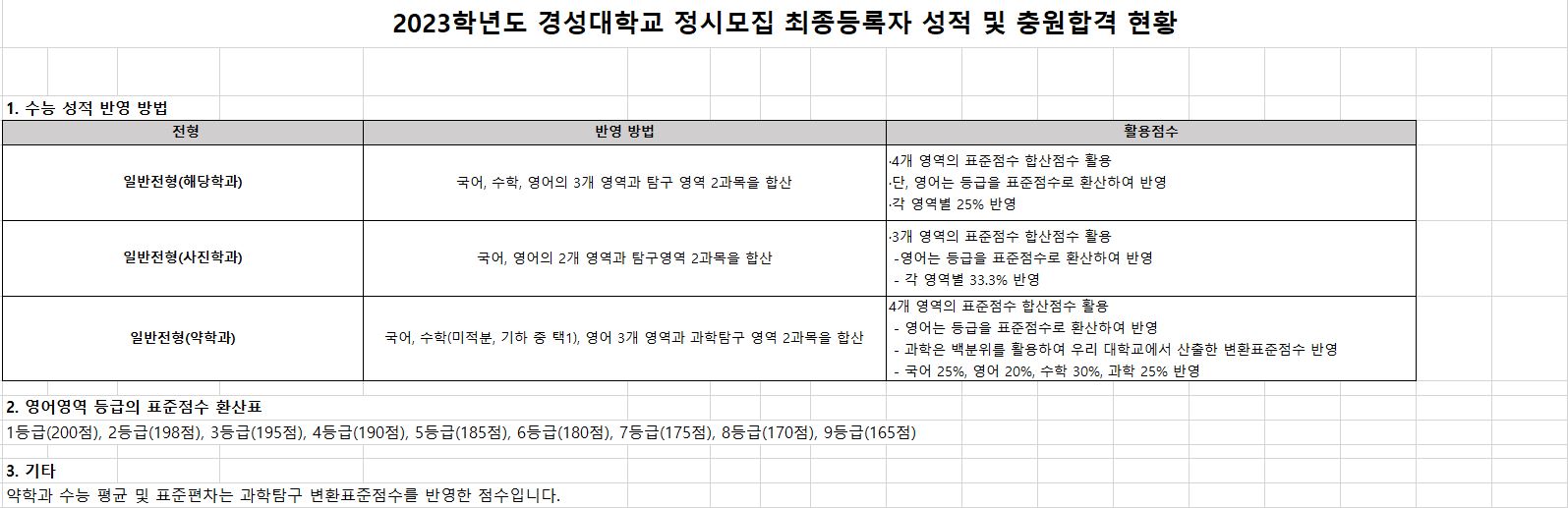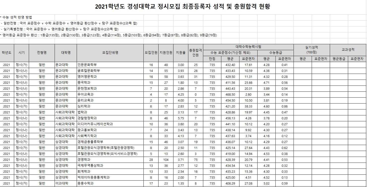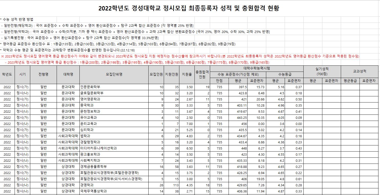 오늘은 경성대학교 3개년 정시 등급에 대해 알아보도록 하겠습니다.