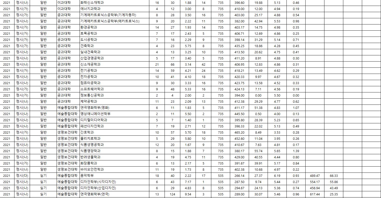 2021학년도 정시 모집 군은 다음과 같았습니다.
