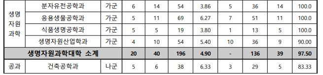 동아대학교는 가, 나, 다군 모두에서 학생을 모집하고 있습니다. 아래는 작년 모집 군입니다.