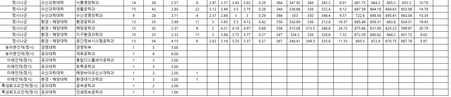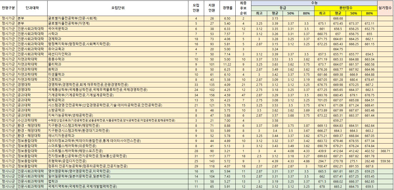 오늘은 부경대학교의 3개년 정시 등급에 대해 포스팅해보도록 하겠습니다.
