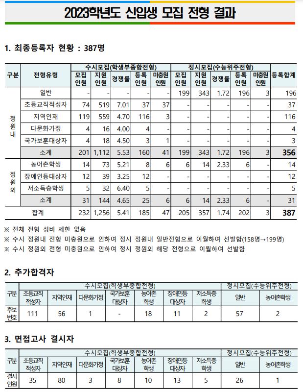 2023학년도 정시 경쟁률은 17.2:1이었으며, 평균 백분위는 81.7이었습니다.