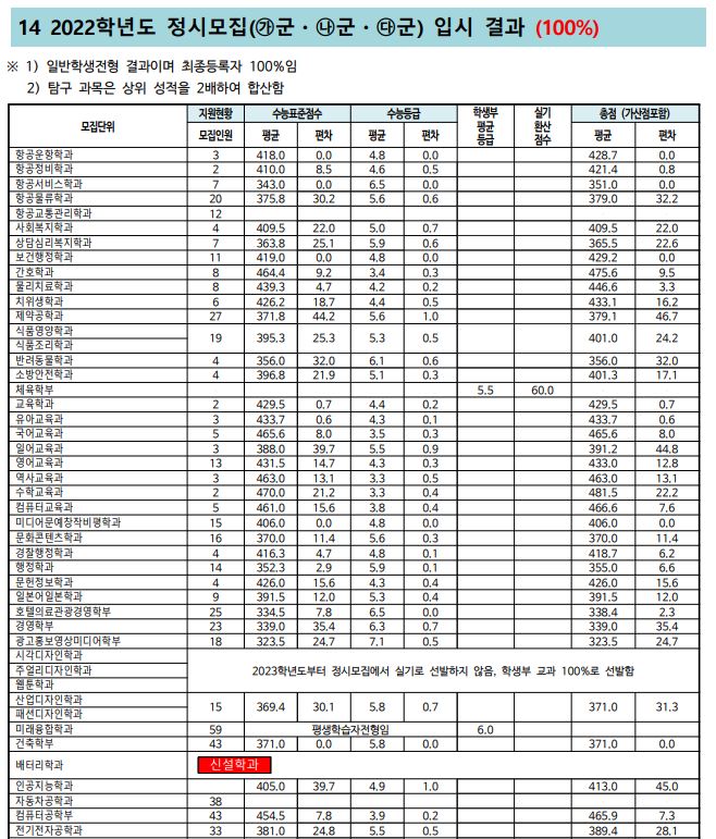 신라대학교는 이전 정시 모집 군과 경쟁률을 공개하고 있지 않기 때문에 따로 첨언하지 않고 자료만 올려두도록 하겠습니다.