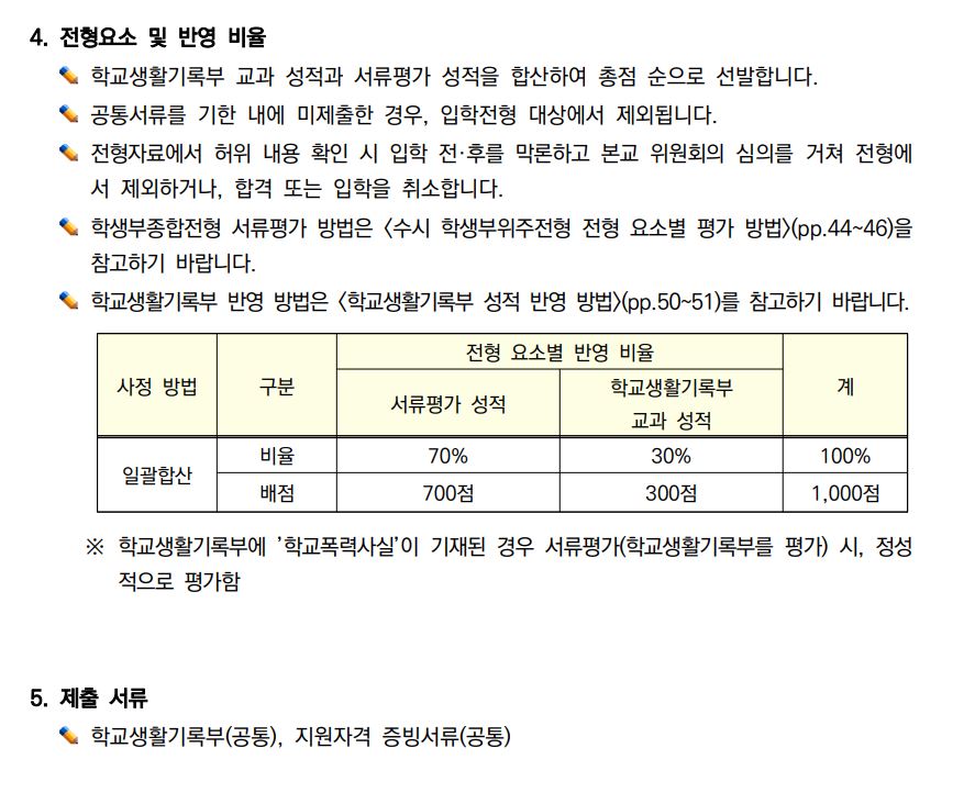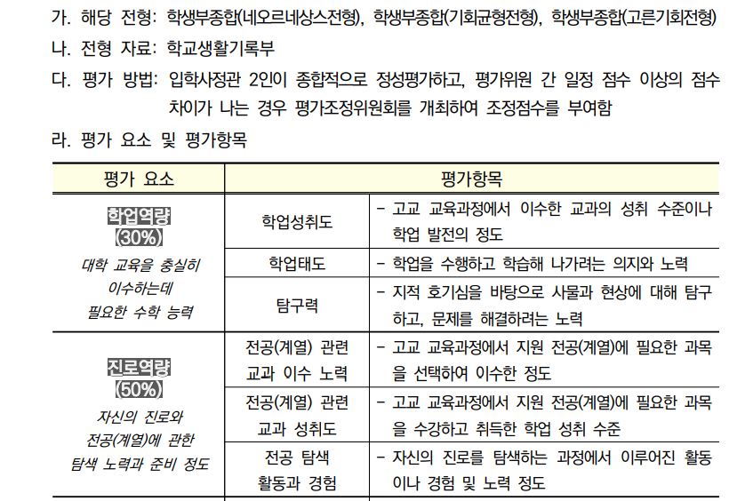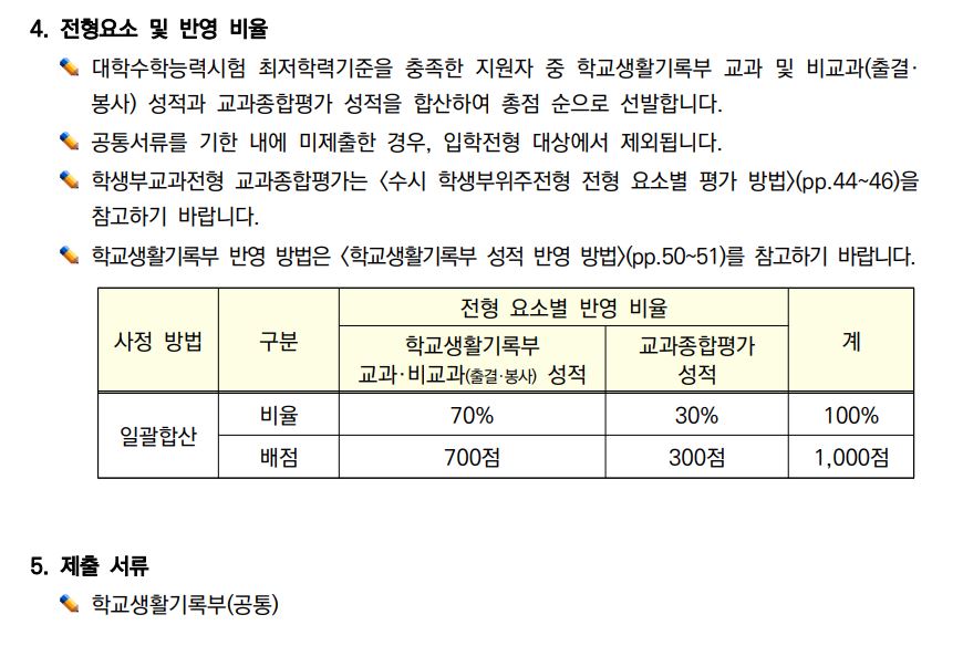 Ⅰ. 수시 학생부위주전형 전형 요소별 평가 방법