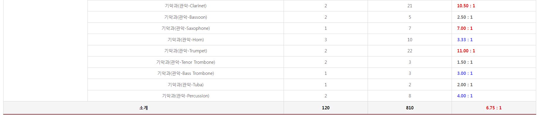 서울캠퍼스 가군 실기위주(일반전형)에서 가장 경쟁률이 높았던 학과는 기악과(관악-Flute)(15.00:1), 성악과(여)(12.13:1), 기악과(관악-Trumpet)(11.00:1) 순이었습니다.