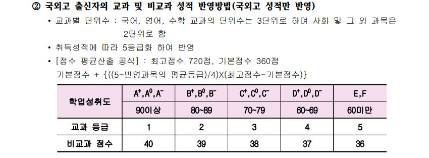 단, 지정교과가 없다면 사회 또는 과학 교과목 -> 제2외국어 교과목 -> 학교 지정 교과목 순으로 반영할 예정입니다.
