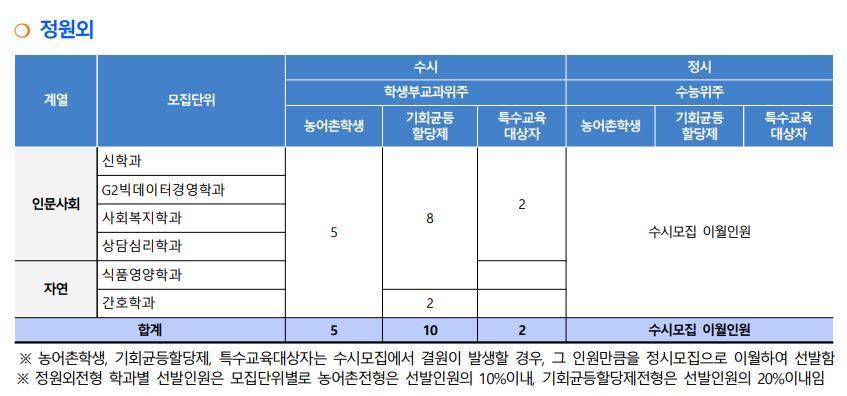 정원외 인원은 정시로 학생을 따로 모집하지는 않으며, 수시모집 이월인원만 모집 예정입니다.