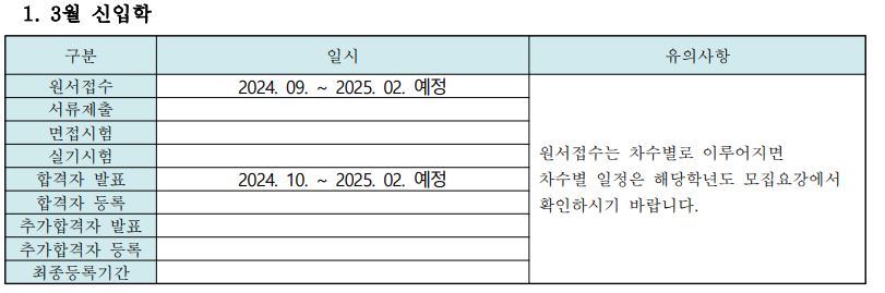3월, 9월로 나누어 신입학생을 모집합니다.