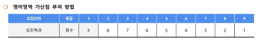 2. 비교내신 대상자 학교생활기록부 성적 환산점수표