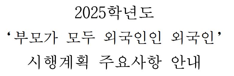 여기서부터는 부모가 모두 외국인인 외국인 시행계획입니다. '부모가 모두 외국인인 외국인' 전형은 강서대학교 국제교육교류원에서 신입생을 모집합니다.