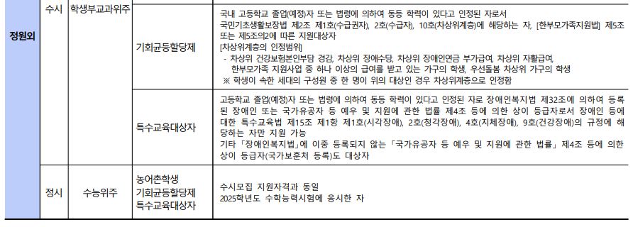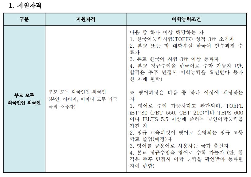 1. 재외국민 및 외국인 모집 (입학정원의 2% 이내)