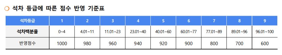 3. 석차 등급에 따른 점수 반영 기준표