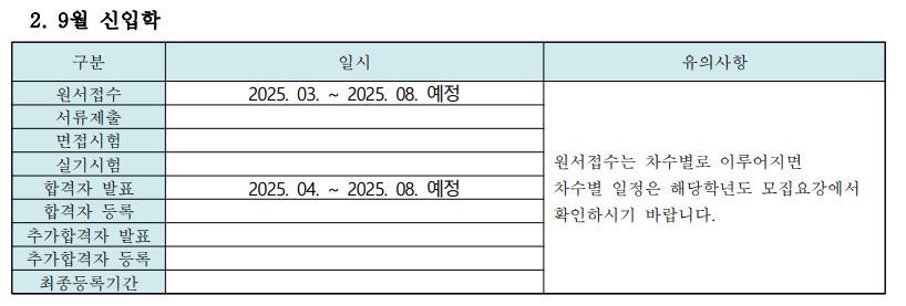 3월, 9월로 나누어 신입학생을 모집합니다.