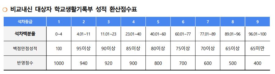 2. 비교내신 대상자 학교생활기록부 성적 환산점수표