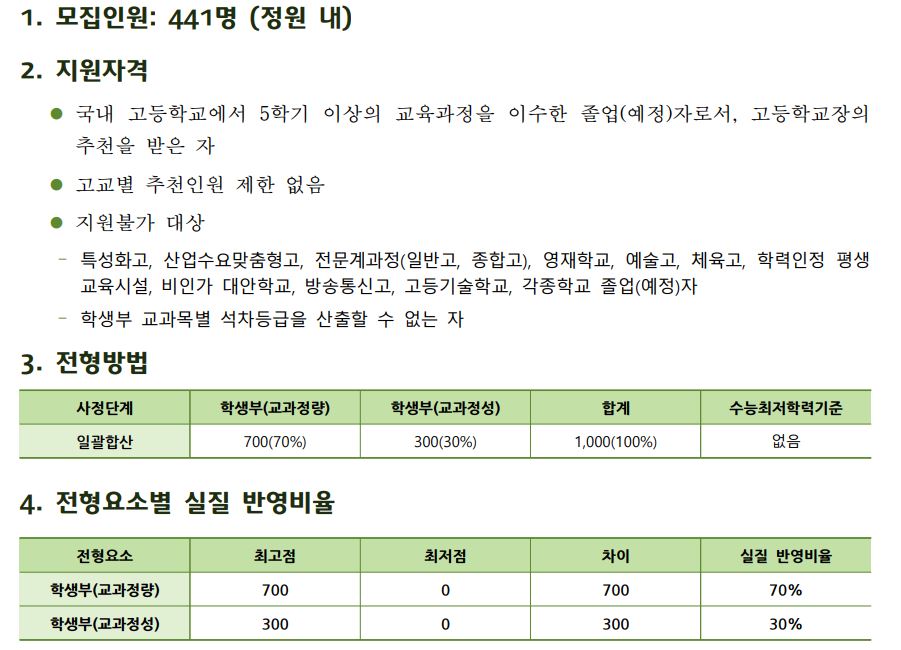 1. 학생부(교과정량) 반영