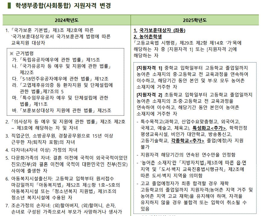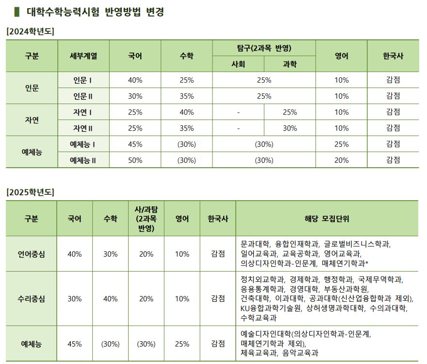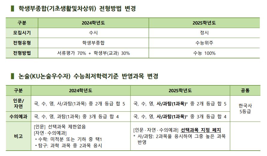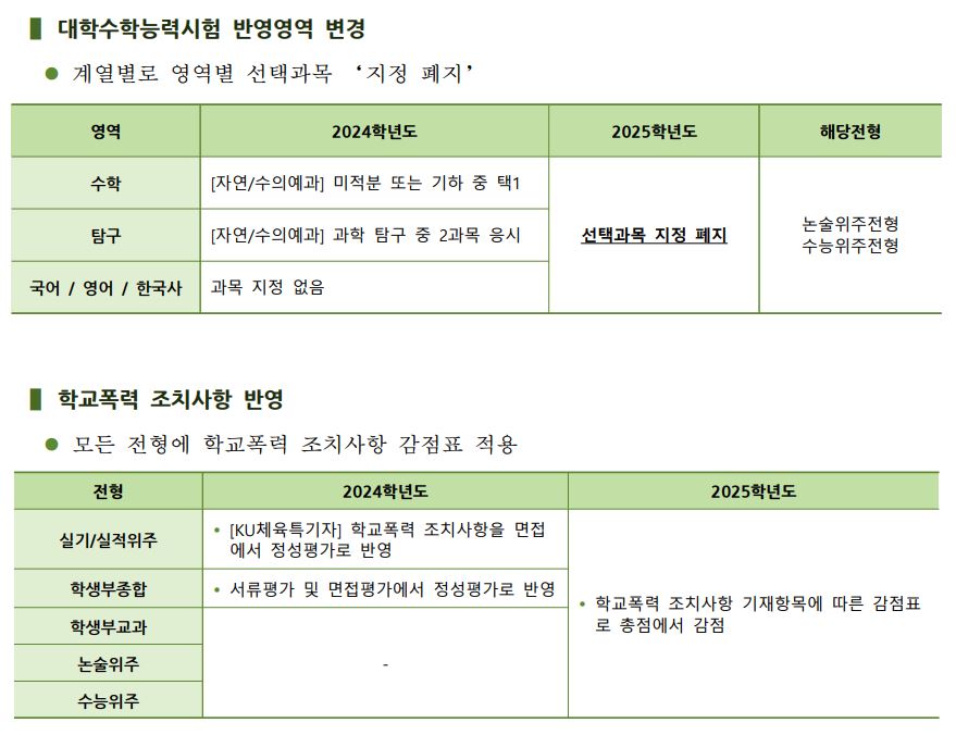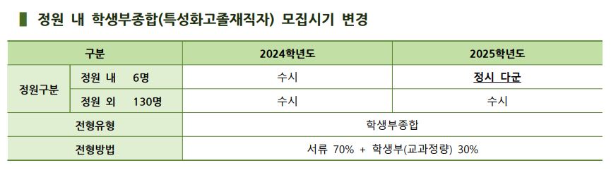 Ⅰ. 2025학년도 입학전형 주요 변경사항