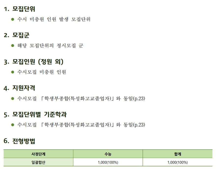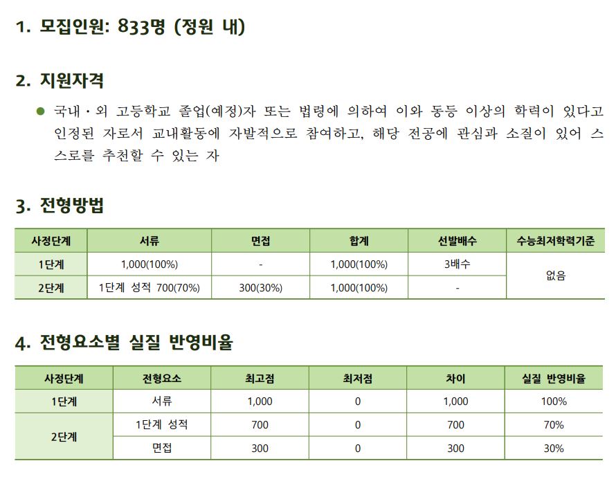 1. 전형별 전형방법 및 모집인원