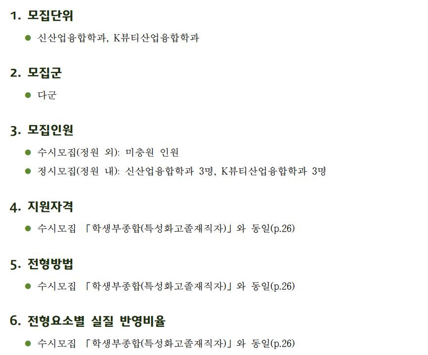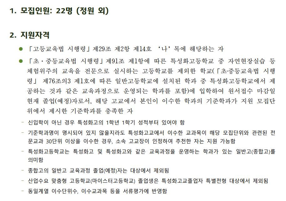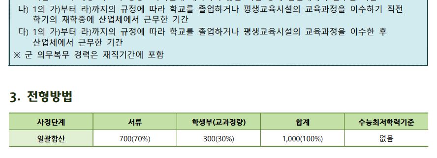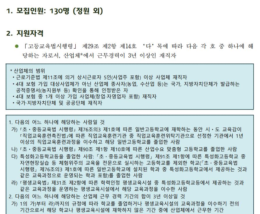 특성화고졸재직자는 원래 정원내, 외 모두 수시로 모집했으나 올해부터는 정원 내 인원을 정시 다군에서 모집합니다.