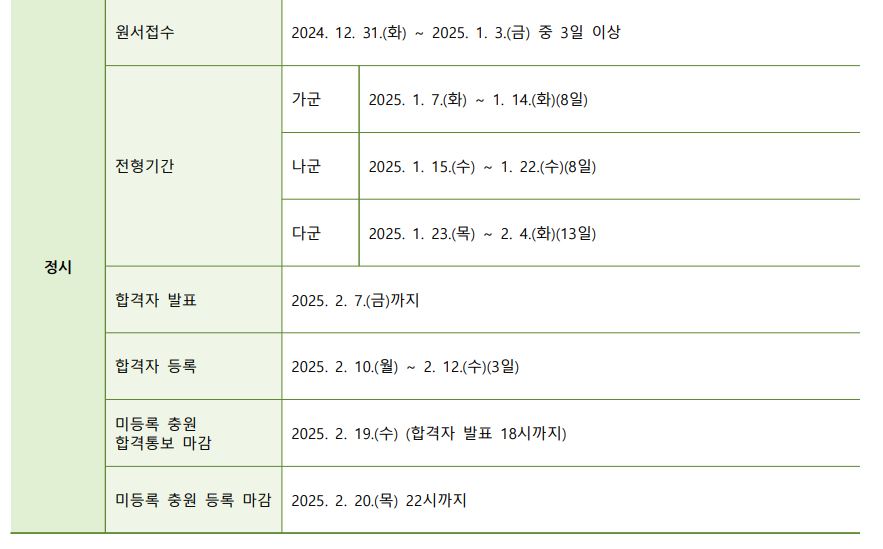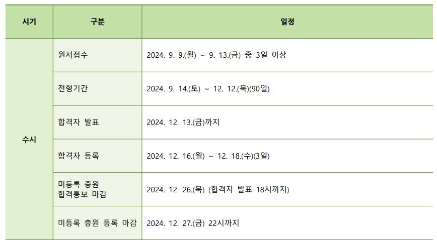 수시는 9월 9일부터 모집이 시작되며, 정시는 12월 31일부터 모집 예정입니다.