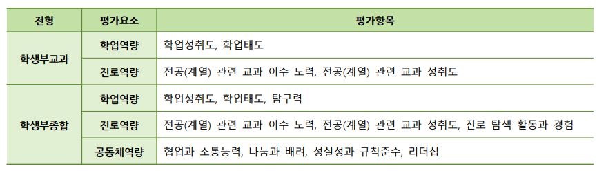 3. 전형별 전형요소 요약