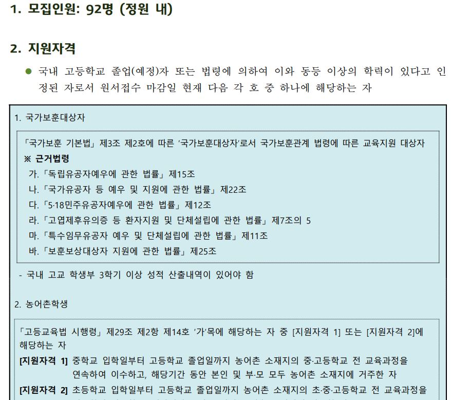 2. 전형별 지원자격 요약