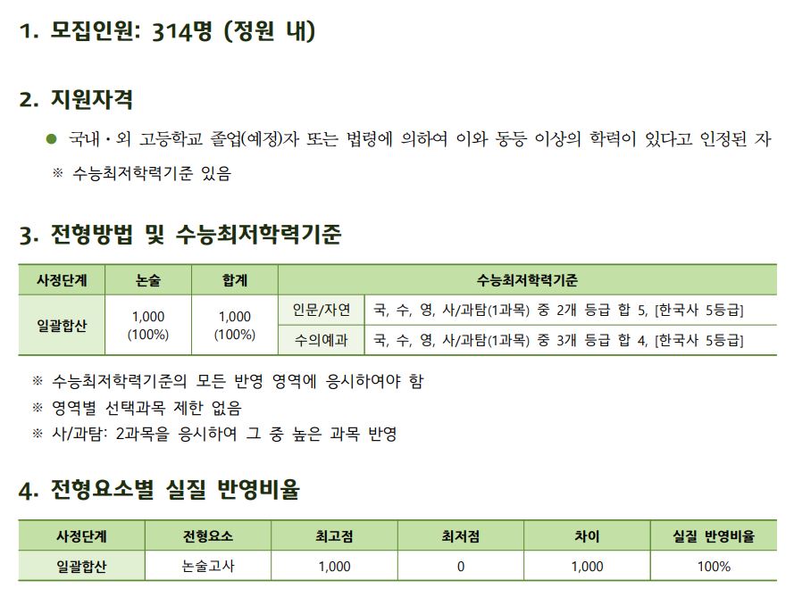 KU논술우수자는 국수영탐 중 2개 등급 합 5등급이어야 하며, 한국사가 5등급 이내여야 합니다.