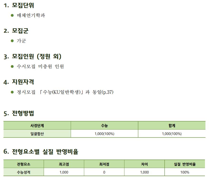 매체연기과 수시 미충원인원은 수능에서 수능성적 100%로 선발합니다.