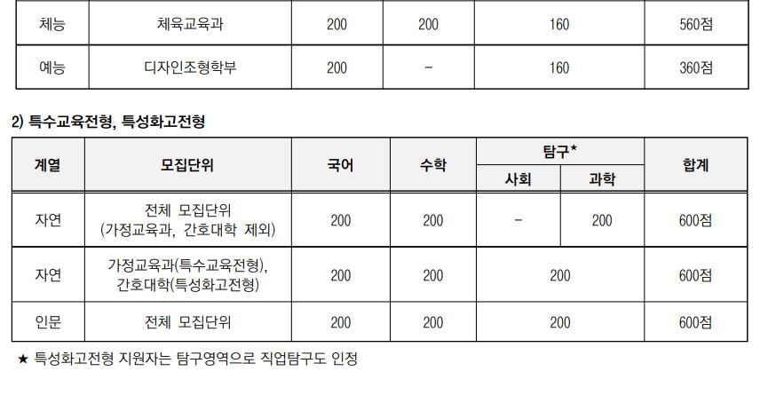 예체능계열은 특기자전형에서 최저학력기준이 있습니다.