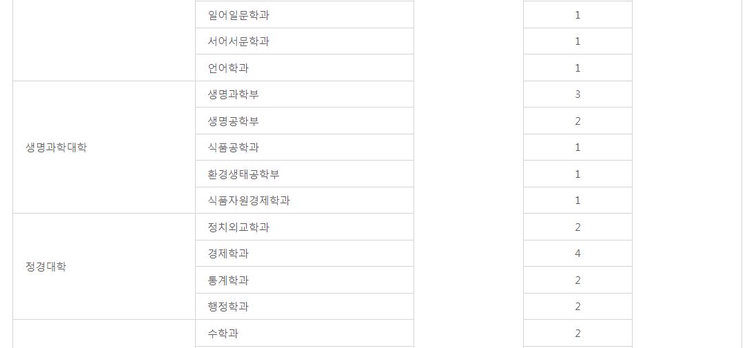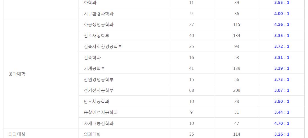 가군 서울캠퍼스 교과우수전형[수능위주]에서 가장 경쟁률이 높았던 학과는 화공생명공학과(12.60:1), 중어중문학과(12.17:1), 서어서문학과(9.40:1) 순이었습니다.