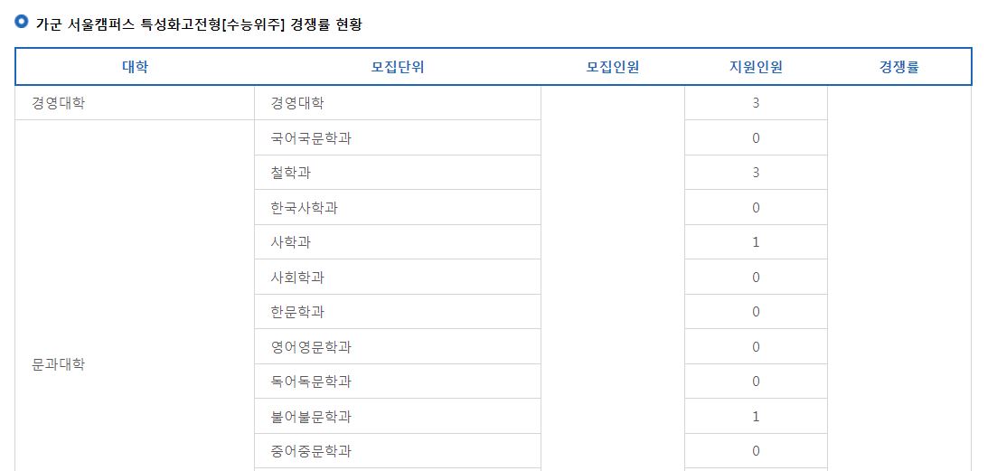 가군 서울캠퍼스 특성화고전형[수능위주] 경쟁률 현황