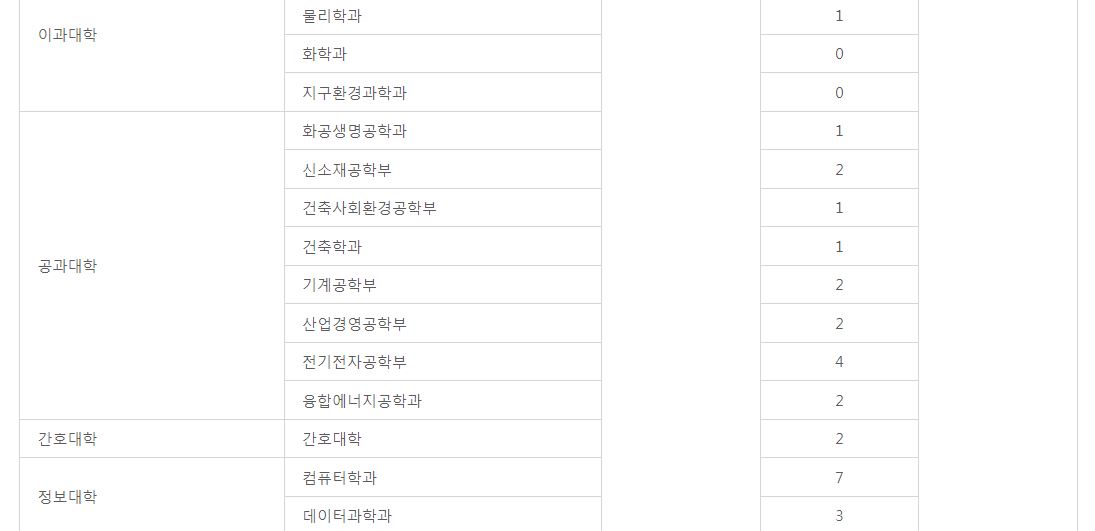 가군 서울캠퍼스 특성화고전형[수능위주]에서는 전체 학과를 합쳐 25명을 모집했으며, 총 경쟁률은 2.96:1이었습니다. 학과별로 살펴보았을 때 가장 지원자가 많았던 학과는 전기전자공학부로 지원인원은 4명이었습니다.