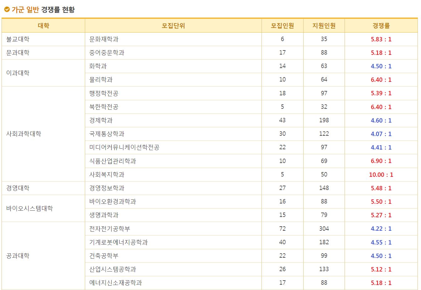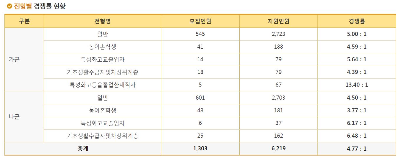 가군 일반 경쟁률 현황