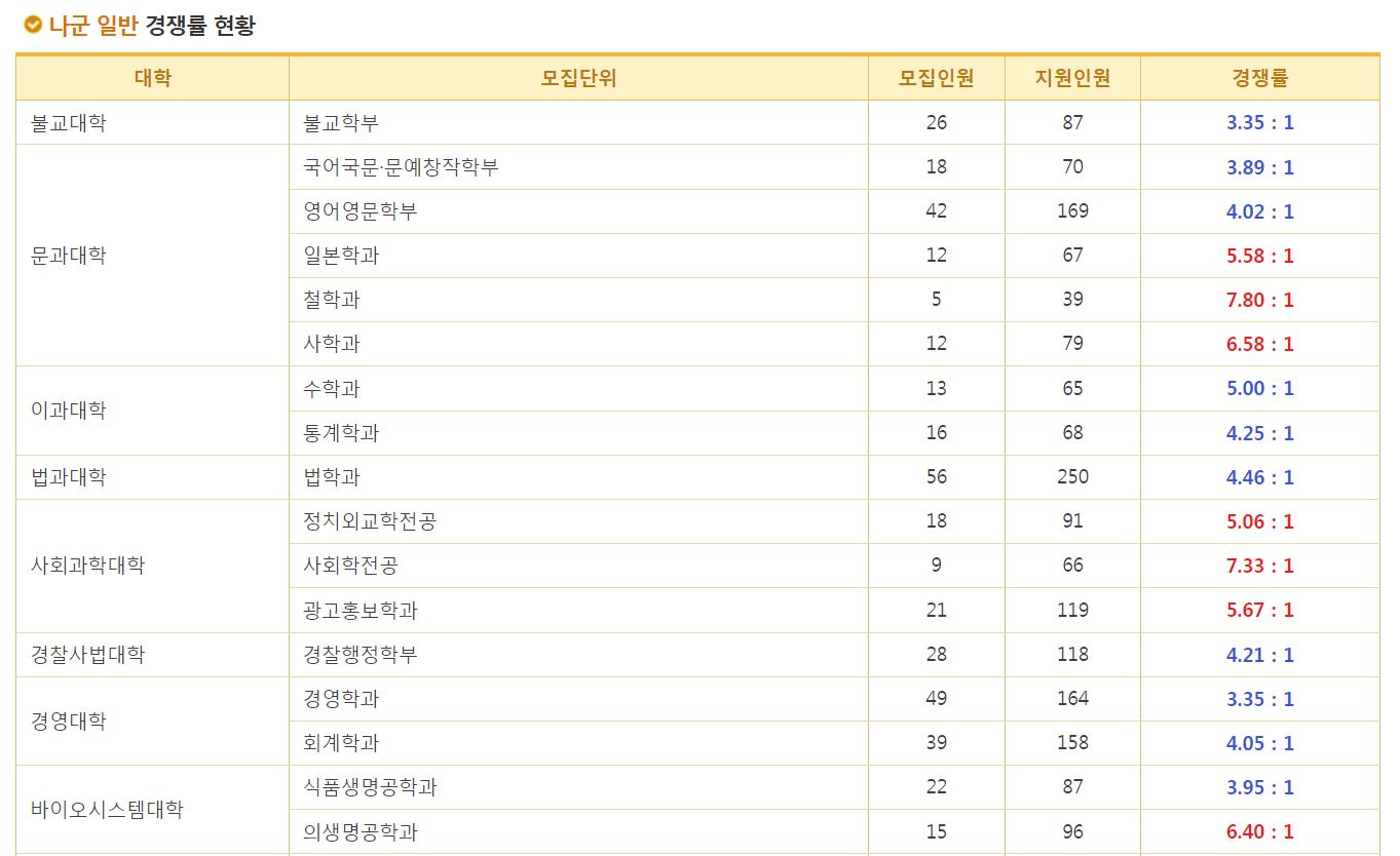 나군 일반 경쟁률 현황