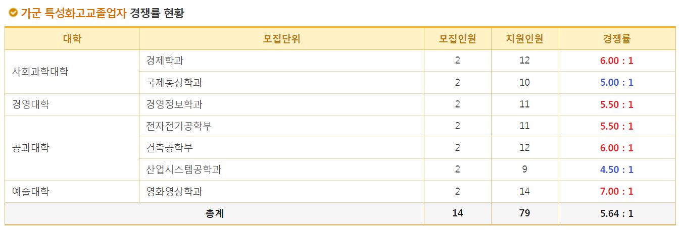 가군 특성화고교졸업자 경쟁률 현황