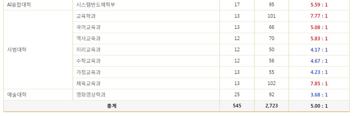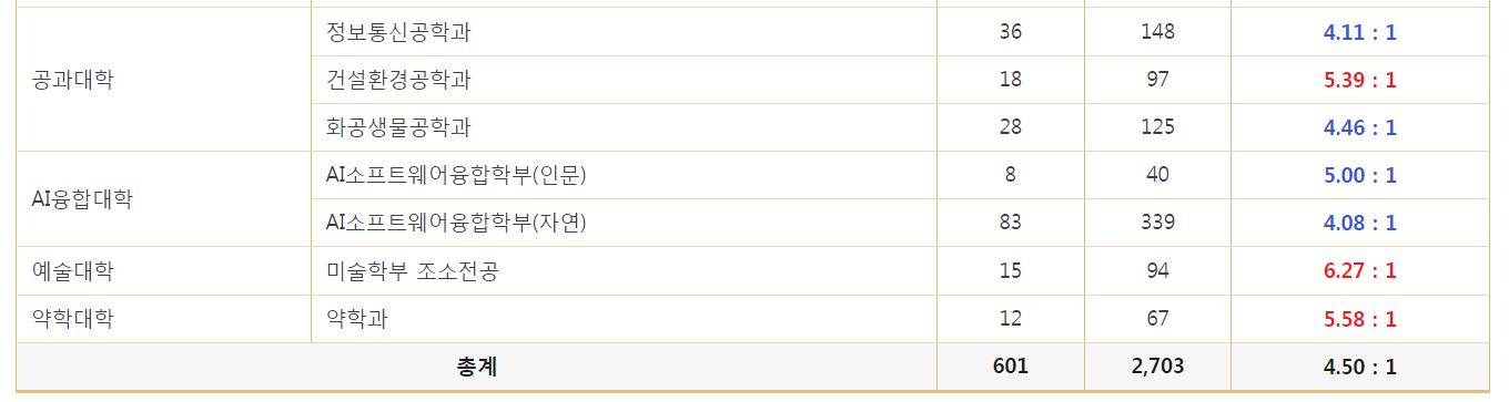 | [4년제/경기도 포천시] 2024학년도 대진대학교 최종 정시 경쟁률 (0) | 2024.02.06 |
