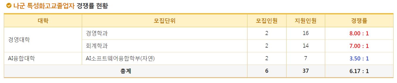 나군 특성화고교졸업자 경쟁률 현황