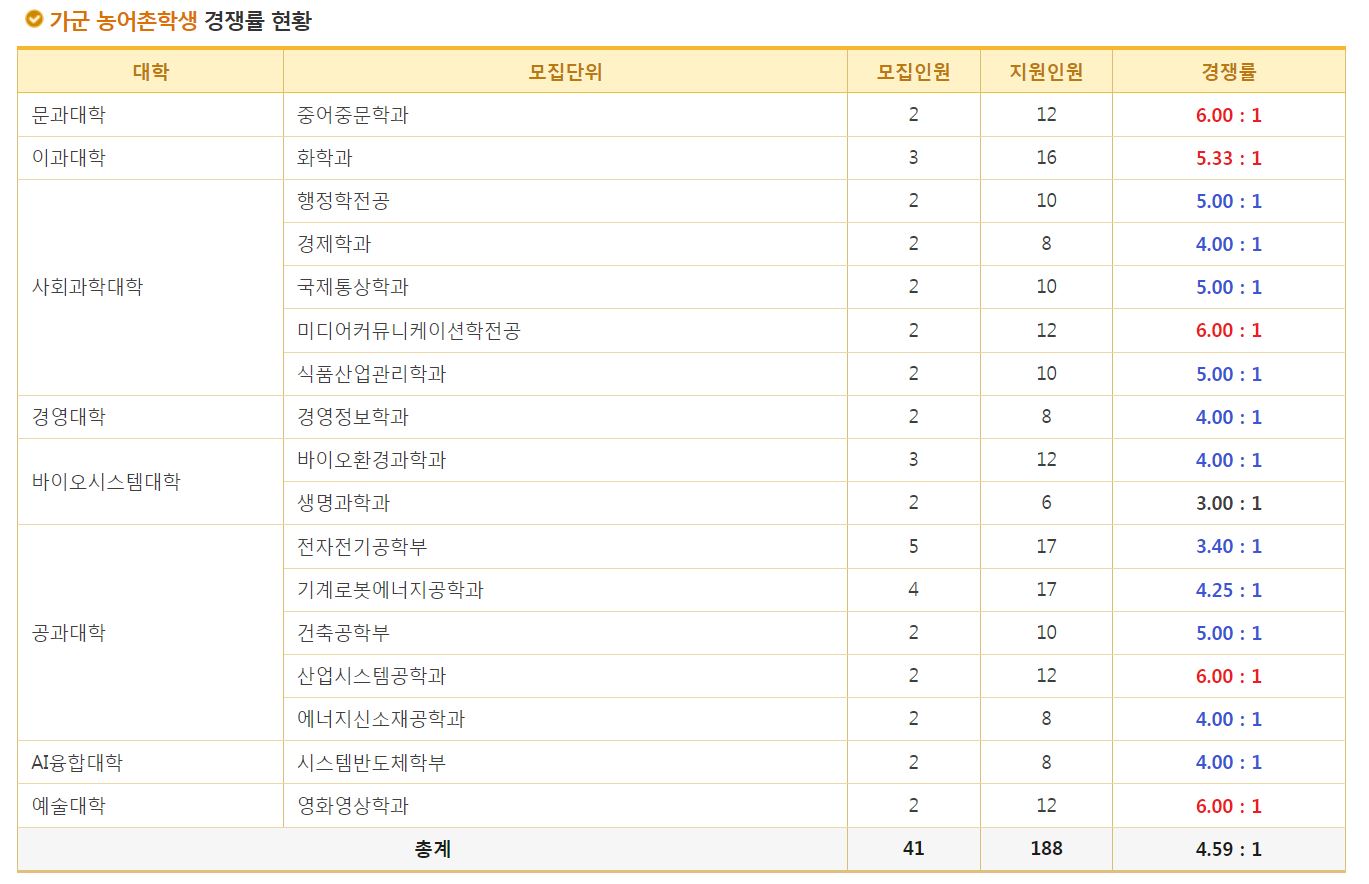 가군 농어촌학생 경쟁률 현황