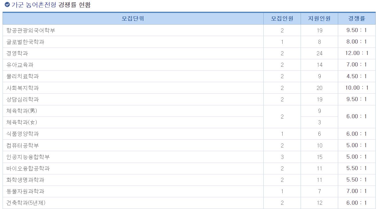 가군 농어촌전형 경쟁률 현황