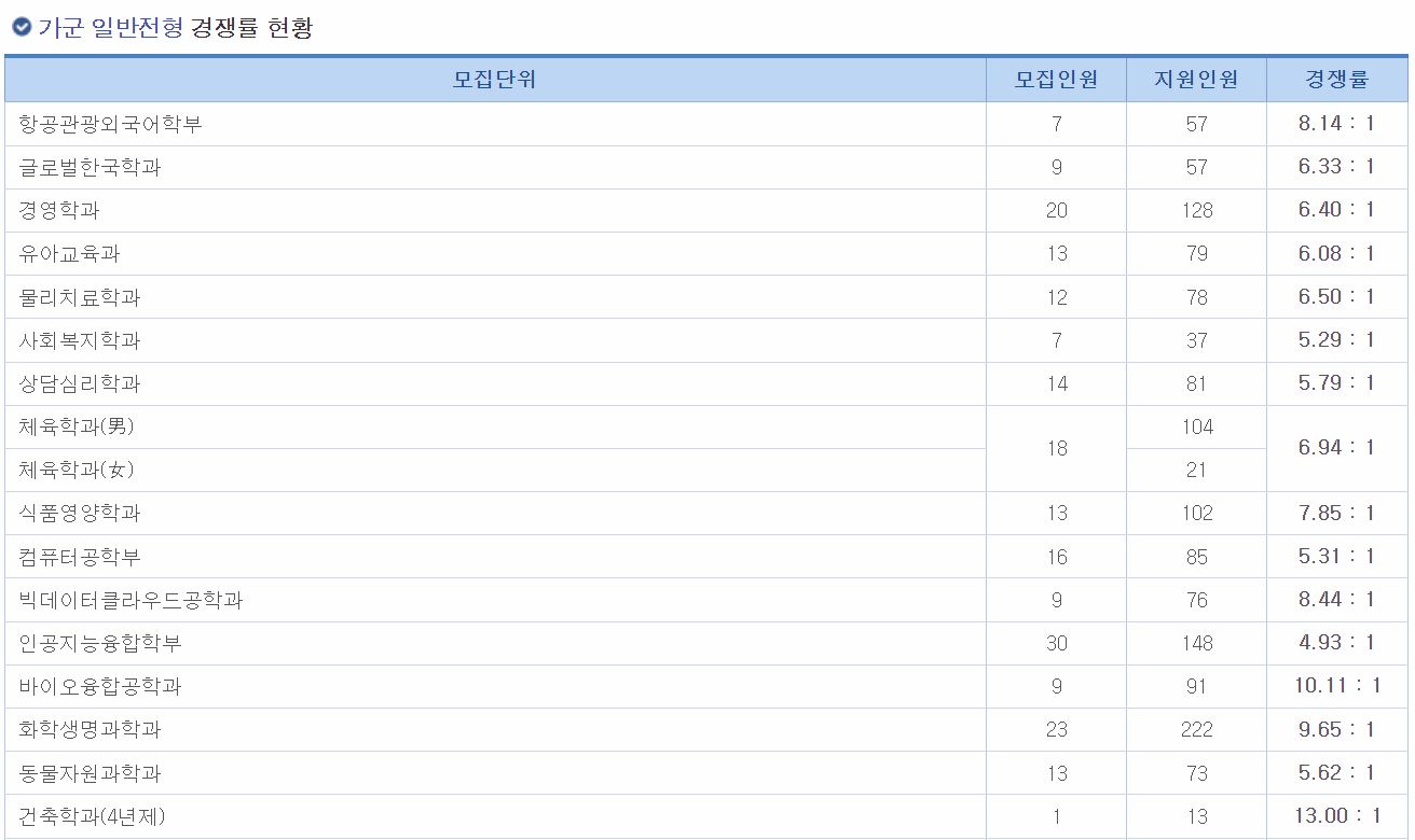 가군 일반전형 경쟁률 현황