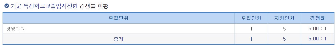 가군 특성화고교졸업자전형 경쟁률 현황